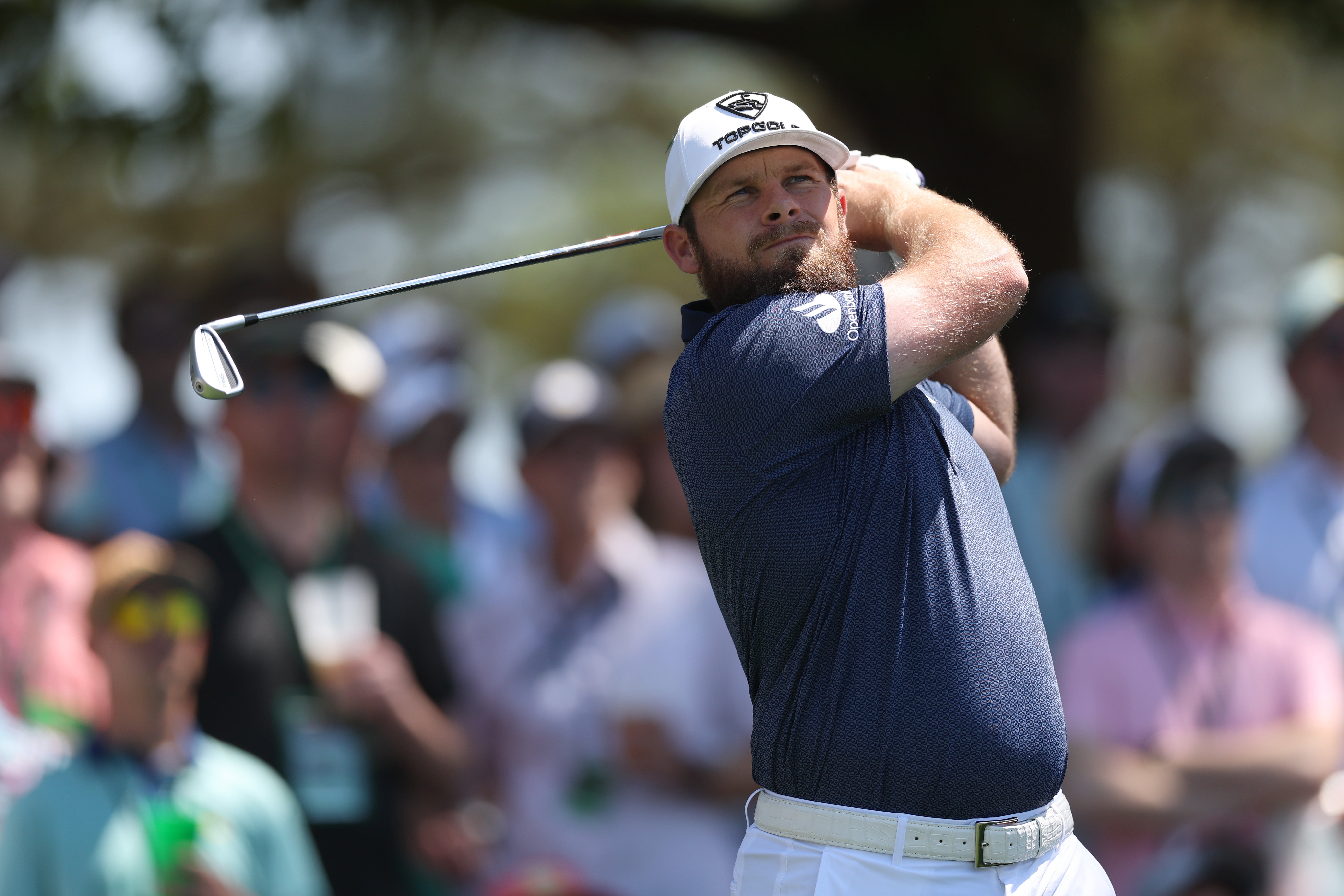 Burns belts a three wood in the direction of the bunker, but seems to have come up short. How will Lowry fare? A quick pick-up of the tee suggests well, and it’s a pleasant start for the Irishman.